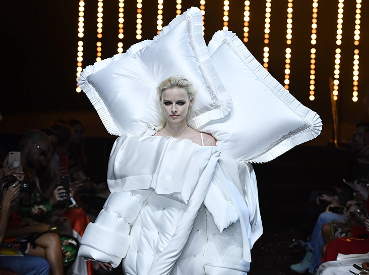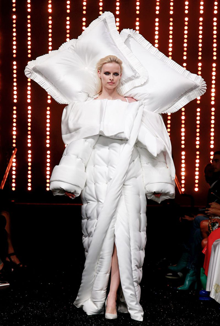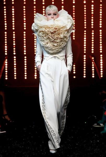 Белый цвет позволяет дуэту уйти от избыточности и гротескности — два греха, которых им, с их привычным предельно сложным архитектурным кроем, не удалось бы избежать, если бы в игру в нужные моменты не вступал белый. Большие оборки, пришитые к вороту подушки и «вырастающие» из платья стебли в белом цвете выглядят будто плоды филигранной работы скульптора.