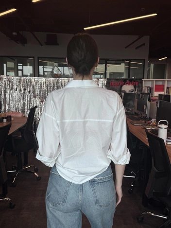 Итак, результат получился почти безупречным — лиф лишь немного просвечивал. Но тут важно учесть, что ткань рубашки была полупрозрачной, а еще, мы не подбирали лиф к оттенку кожи, а он достаточно светлый. Соответственно, если взять светло-красный, приглушенный цвет, то можно получить идеальный результат.