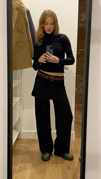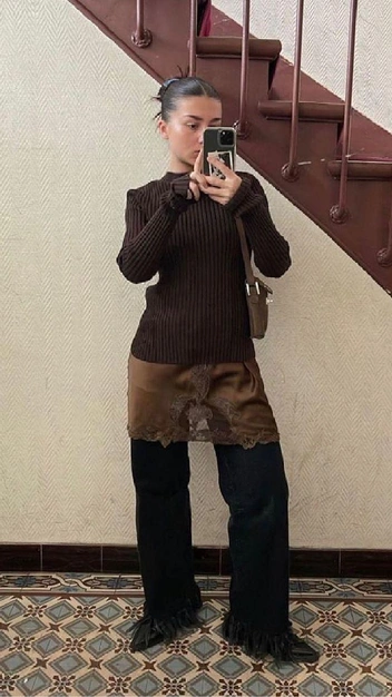 И помните, про свитер. Джемпер грубой вязки, из-под которого кокетливо выглядывают кружева мини-юбки, надетой поверх брюк — это по-прежнему very hot. (читайте также: Puma Speedcat, adidas Tokyo и еще 5 модных ретро-кроссовок на лето 2025).