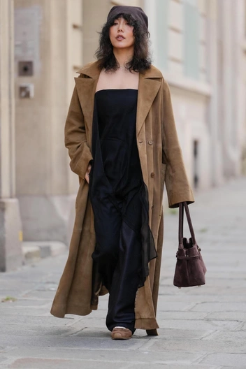 Утилитарность в моде превратила даже роскошную замшу в очень даже повседневный материал. Лоферы, яхтенные туфли, кроссовки и кеды, казаки и балетки из этого материала теперь дополняют ежедневные луки. Мы носим ее даже чаще привычной кожи и ткани, из которых обычно делают обувь, ведь замша способна сделать любой образ в сотни раз роскошнее. Из оттенков выбираем глубокий коричневый — такой всегда в повестке.