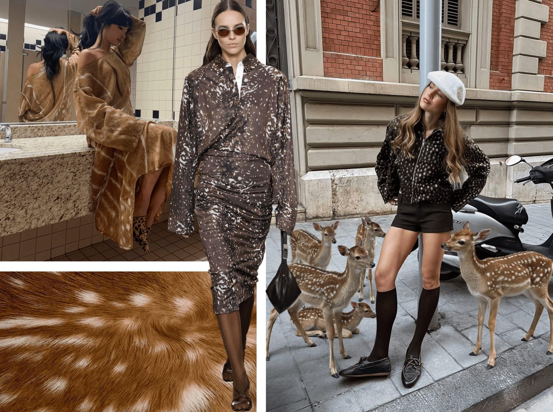 После долгих лет, когда мода попеременно кочевала от змеи к корове, а от зебровых полос к тигриным, мы готовимся увидеть что-то практически новое. На пике трендов сейчас, судя по прогнозам, готовится оказаться «Бэмби» — рисунок, имитирующий оленью шкурку.