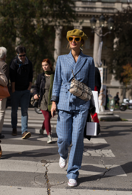 Берету под силу и другая задача — добавить наряду настроения: красные, темно-синие или насыщенного изумрудного оттенка беретки разбавят минималистичные или монохромные образы. Особый шик, как показала street style-хроника — берет с тренчкотами, с денимом или с самым модным предметом гардероба этой осени — с клетчатым, слегка увеличенным жакетом.