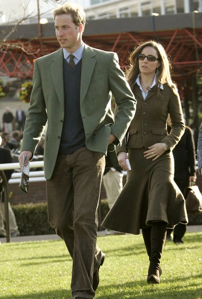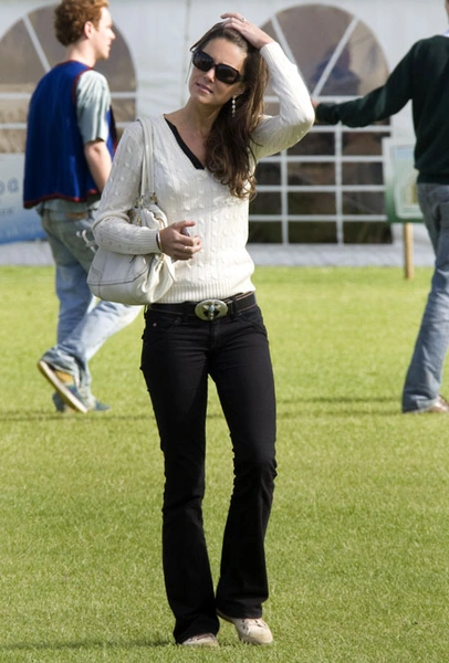 Хотя в 2005 году Кэтрин уже встречалась с принцем Уильямом, в этот период ее наряды были заметно более расслаблены. Один из типичных примеров — джинсы с заниженной талией, акцентный ремень и белый топ на тонких бретелях. Сейчас в таком аутфите мы представляем Кэтрин с трудом, зато тогда именно эта формула (с дополнением в виде кардигана из тонкого трикотажа) будущая королева-консорт носила чаще всего. Тогда же она активно экспериментировала с кантри-стилем — одним из излюбленных направлений британских аристократов. К слову, сейчас герцогиня продолжает вдохновляться расслабленными загородными образами и носит джинсы, жилеты и уютный трикотаж довольно часто.