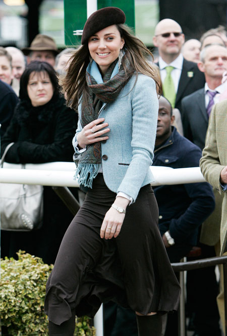 За Кейт все чаще следуют папарацци, не давая ей проходу, в то время как принц Уильям с предложением совсем не спешит (читайте также: От знакомства до кольца: сколько нужно ждать, чтобы выйти замуж за принца). В этот период в расписании Кэтрин — все больше уже привычных ей сейчас мероприятий: матчи по поло, формальные выходы с королевской семьей и скачки в Челтнеме. Стиль ее практически не меняется: все те же облегающие кардиганы, платья с абстрактными орнаментами и шляпы-федоры.