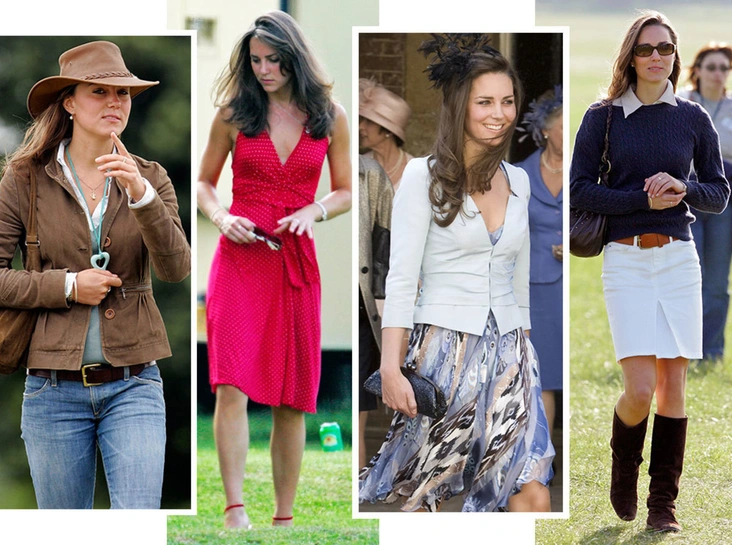 Сейчас она не только легко носит сдержанные платья-пальто ярких цветов по образу и подобию Елизаветы II, но и не отказывается от мини, облегающих силуэтов и платьев с открытыми плечами. Правда, до того, как Миддлтон заполучила в мужья самого завидного жениха Британии и начала работать с целым пулом стилистов и дизайнеров, девушка была была обладательницей гораздо более скромного гардероба, в котором соседствовали просты белые топы, расслабленные джинсы и платья с психоделическими принтами — все то, что теперь идеально иллюстрирует тренды нулевых и 2010-х.