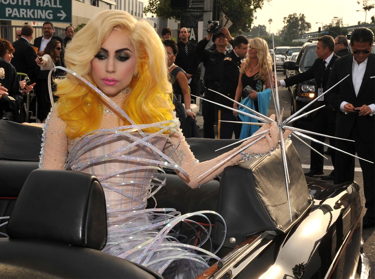 Для американской певицы Lady Gaga кэмп тоже не в новинку. Несмотря на то, что последнее время она стала более сдержанной в подборе образов, отчасти именно безумным сочетаниям, экстраординарным выходам и успешному сотрудничеству с культовым дизайнером Александром Маккуином обязан стремительный взлет ее карьеры. Помимо нашумевшего костюма из мяса, с которым часто ассоциируют поп-певицу, у Gaga было много других, не менее эпатажных образов: наряд лобстера в 2010 году, костюм гигантского цветка мака на MTV Europe Music Awards в 2011 году, платье-парик с челкой, и лягушачий костюм, усыпанный куклами «Маппет-Шоу». Поле для вдохновения образами эпатажной поп-дивы точно не ограничено.