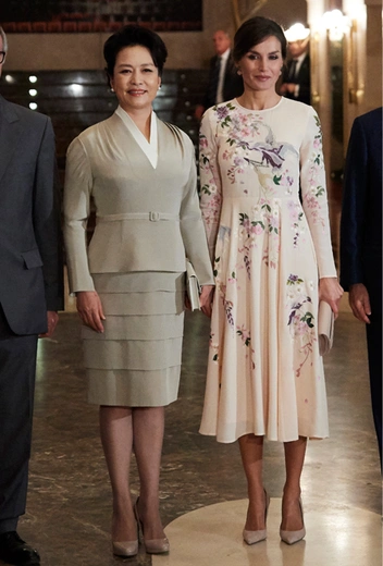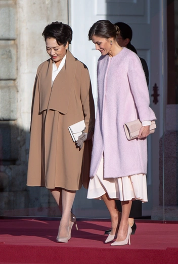 Для мадам Пэн визит в Испанию вместе с супругом, президентом Си Цзиньпином, стал очередным способом показать свое мастерство безупречного дипломатического дрессинга. Для КНР этот визит имел особую важность – их лидер не посещал Испанию с 2005 года. С трапа самолета в Мадриде первая леди вышла в кремовом платье длины миди и легком приталенном пальто винного оттенка. Из аксессуаров она предпочла только изящную брошь и тонкий ремешок в тон к верхней одежде – в умении выбрать минимум деталей, при этом не создавая впечатления оперативных сборов и небрежного шика, Пэн Лиюань нет равных.