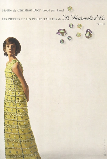 Эти магические переливающиеся кристаллы Aurora Borealis так очаровали Кристиана Диора, что он стал инкрустировать камнями не только украшения, но и расшивать ими кутюрные платья, создавая настоящие шедевры из ткани и искусственных камней. С этого момента бренд бренд Swarovski прочно обосновался в модной индустрии, а позже активно сотрудничал с Ивом Сен-Лораном, Эльзой Скиапарелли, Джанфранко Ферре, Джоном Гальяно, Рафом Симонсом и Марией Грацией Кьюри.