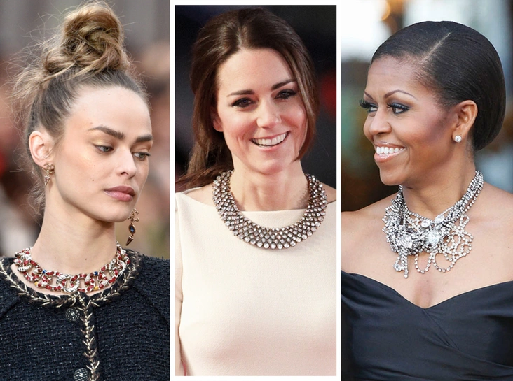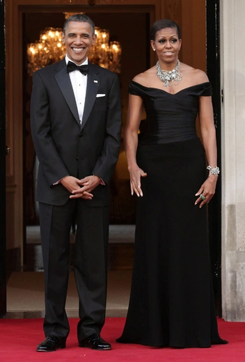 В современной истории подобный реверанс в сторону менее дорогостоящей бижутерии делала и Мишель Обама. Во время торжественного приема в резиденции американского посла в Лондоне супруга тогда еще президента США Барака Обама надела черное платье в пол от Ralph Lauren и дополнила массивным колье Tom Binns, которое на деле оказалось бижутерией (читайте также: От Жаклин Кеннеди до Мишель Обамы: 6 Первых леди США ирландского происхождения).