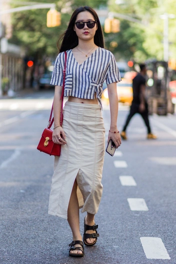 Конечно, классическую юбку-карандаш лучше сочетать с более утонченной обувью. А вот демократичные модели, с принтами, из тканей ярких расцветок хорошо дополняются биркенштоками. Свободные юбки мини, миди и летящие макси весьма выигрышно смотрятся с удобными и простыми сандалиями. Добавить пикантности образу можно стильным головным убором.