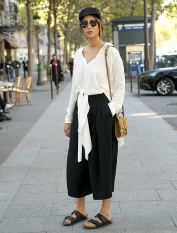 Хотите выглядеть смело и актуально? Кюлоты — неоднозначный элемент одежды, отношение к нему тоже разное. Но они возвращаются в моду. И вместе с противоречивыми биркенштоками создают крутой трендовый дуэт.