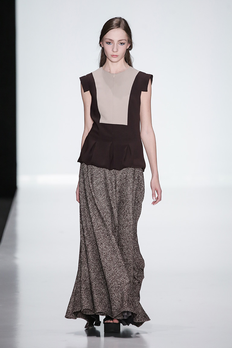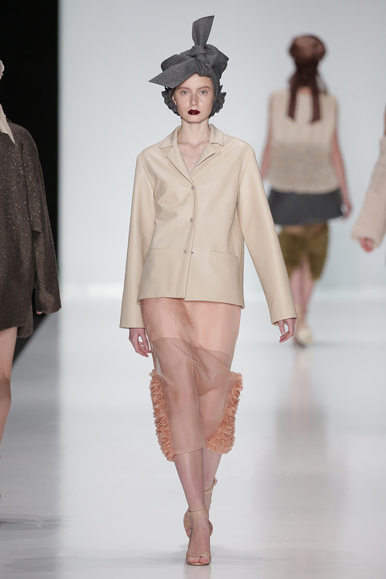 Для создания вещей использовали органзу, кашемир, жесткий драп, фактурный шелк и тонкую натуральную кожу. Цвета – бежевый, коричневый, молочный и серый, дополненные хаки и ярко-розовым оттенком, который, по мнению сестер, дает ощущение осенней гаммы.