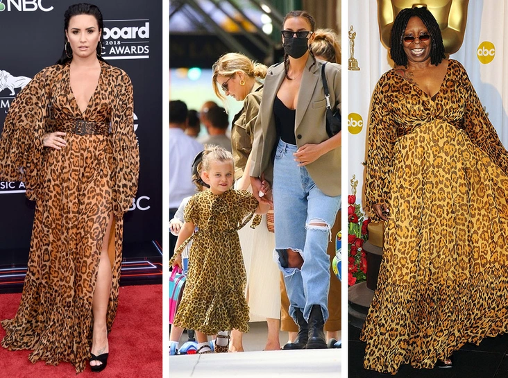 Платье Деми Ловато от Dior почти идентично платью того же бренда, в котором Вупи Голдберг предстала на «Оскаре». За анималистичным принтом и воздушными шифоном скрыты различия в их фигурах. Единственное, что придает какую-то новую форму выходу Ловато — это едва заметный ремень, подчеркивающий талию, и интригующие вырезы на подоле платья, которые отсутствовали в прошлой версии наряда. Но лучше всего такой образ выглядит на малышке Лее Купер, дочери Ирины Шейк и Бредли Купера, на которой ни вызывающий леопард, ни оборки из шифона не выглядят чересчур (читайте также: Самый модный ребенок Нью-Йорка: как одевается дочь Ирины Шейк и Брэдли Купера).