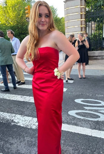 Дочка известной американской актрисы тоже решила обратиться к семейным архивам, где девушка и нашла ярко-красное платье в пол без бретелей. В нем Рован Хенчи отправилась на свой выпускной вечер. Брук Шилдс надевала это платье на «Золотой глобус» в 1998 году. Тогда актриса дополнила наряд накидкой в тон платью, алой помадой и классическими локонами в стиле старого Голливуда. А вот Рован сделала ставку на дерзкий макияж и небрежную прическу. Так выглядит разница поколений (читайте также: Стыдно вспомнить: 10 культовых выпускных нарядов из кино, о которых раньше мечтали все).