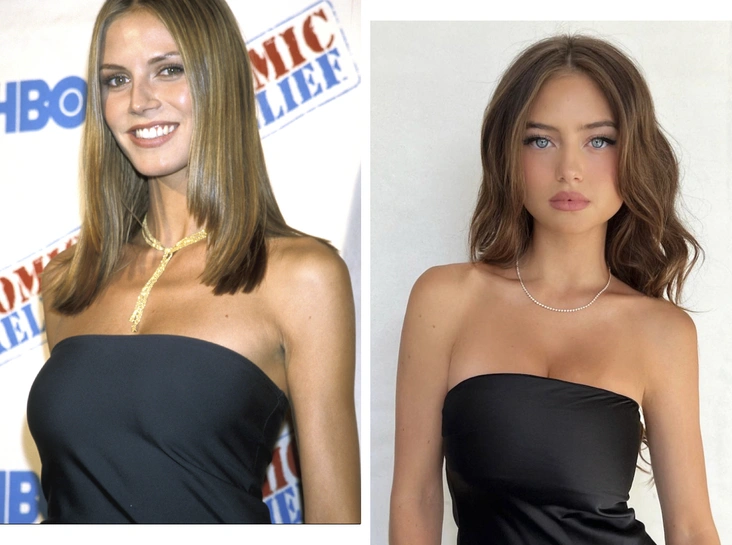 Дочка Хайди Клум пошла по стопам мамы и тоже посвятила себя моделингу и миру моды. Однако для выпускного вечера 18-летняя Лени выбрала не новинку популярного бренда, а платье из гардероба мамы, в котором Хайди выходила в свет в 1998 году. Лаконичный образ в стиле 90-х, черное платье без бретелей, идеально село на фигуру дочки Клум. Образ дополнили минималистичное колье и небольшая сумка.