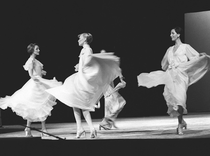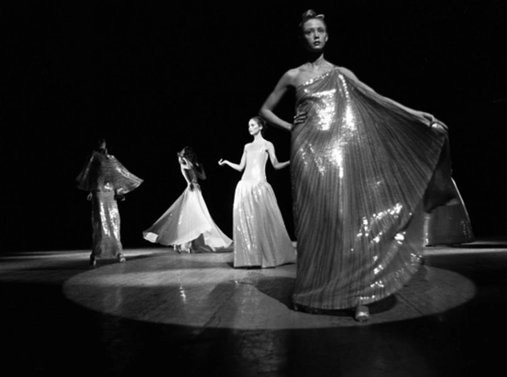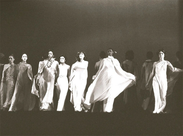Следующий показ принадлежал Рою Хальстону. Команда звездного дизайнера состояла из его лучших друзей и самых любимых моделей. Манекенщицы неподвижно стояли в изящных позах на темной сцене, а когда свет софитов направлялся на одну из них, модель тут же начинала двигаться. Она демонстрировала одежду, а затем вновь замирала. В этот момент сцену вновь поглощала тьма, а мгновением позже в свете софитов оказывалась уже другая модель. В качестве музыкального сопровождения для показа Хальстон выбрал композицию из кинофильма Лукино Висконти «Гибель богов».
