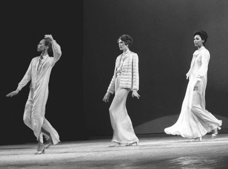 В то время как француженки двигались медленно, с королевской грацией, американки дефилировали энергично, пританцовывая под зажигательные композиции Элвиса Пресли, Марты Ривз и Рэя Чарльза – артиста, выросшего на традициях американской поп-культуры. Хореографом показа выступила знаменитая Кей Томпсон, крестная мать Лайзы Миннелли. Именно она настаивала на том, чтоб модели шли как можно быстрее и динамичнее.