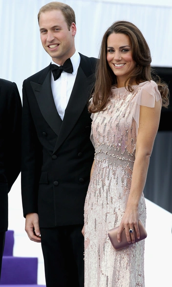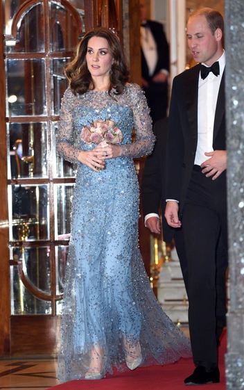 Мастер британской вечерней моды Дженни Пэкхэм надолго стала главным компаньоном Кембриджской в вопросах подбора идеальных образов. За свою королевскую карьеру герцогиня обращалась к ней за помощью неоднократно. Одним из первых знаковых образов стала пыльно-розовое платье с блестками, которое Кейт примерила для гала-ужина в 2011 году. Такое акцентное и эффектное платье она решила завершить сдержанными аксессуарами — лаконичным пыльно-розовым клатчем и нюдовыми босоножками. Еще более впечатляющий образ она представила в 2017 году, появившись на Royal Variety в сверкающем платье в пол небесно-голубого оттенка, дополненном серебристыми лодочками (читайте также: Во всем блеске: любимые вечерние туфли королевских особ).