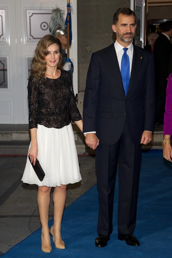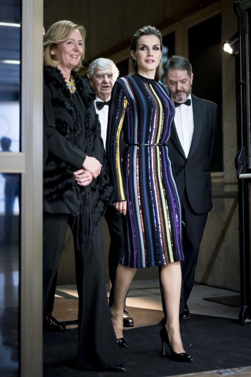 Летиция всегда идет своим путем, в том числе и в вопросах экспериментов с королевским стилем. Испанская королева тоже любит пайетки, но предпочитает выбирать менее акцентный вариант — платья, усыпанные черными блестками, которые выглядят более формально, чем классические платья лаконичного фасона, но при этом не так бросаются в глаза.
