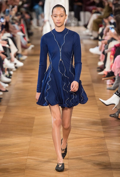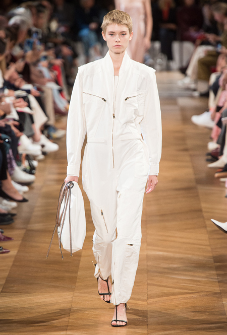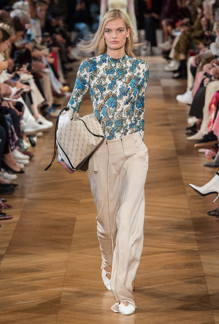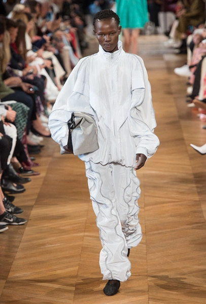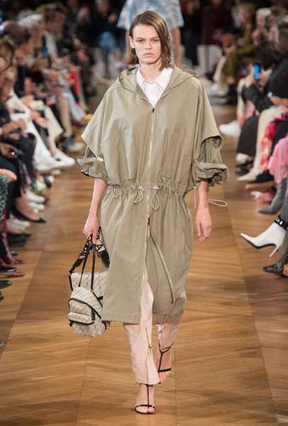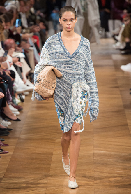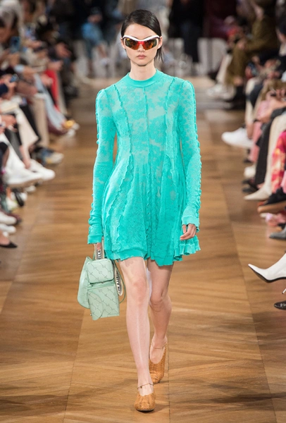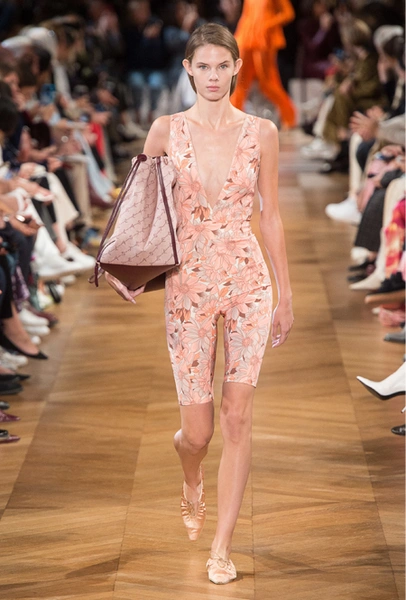 Об отдыхе на морском побережье и палящем солнце напоминает все: облегающие лонгсливы и платья с юбкой-солнце на манер дайверской экипировки, объемные плетеные сумки и принтованные велосипедки на пару с топом тон в тон. По-новому дизайнер посмотрела на цветочный принт — бутоны на одежде в стиле спорт-шик выглядят сюрреалистично, но от этого не менее женственно.