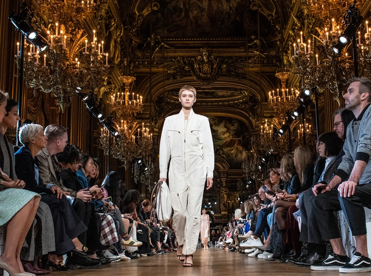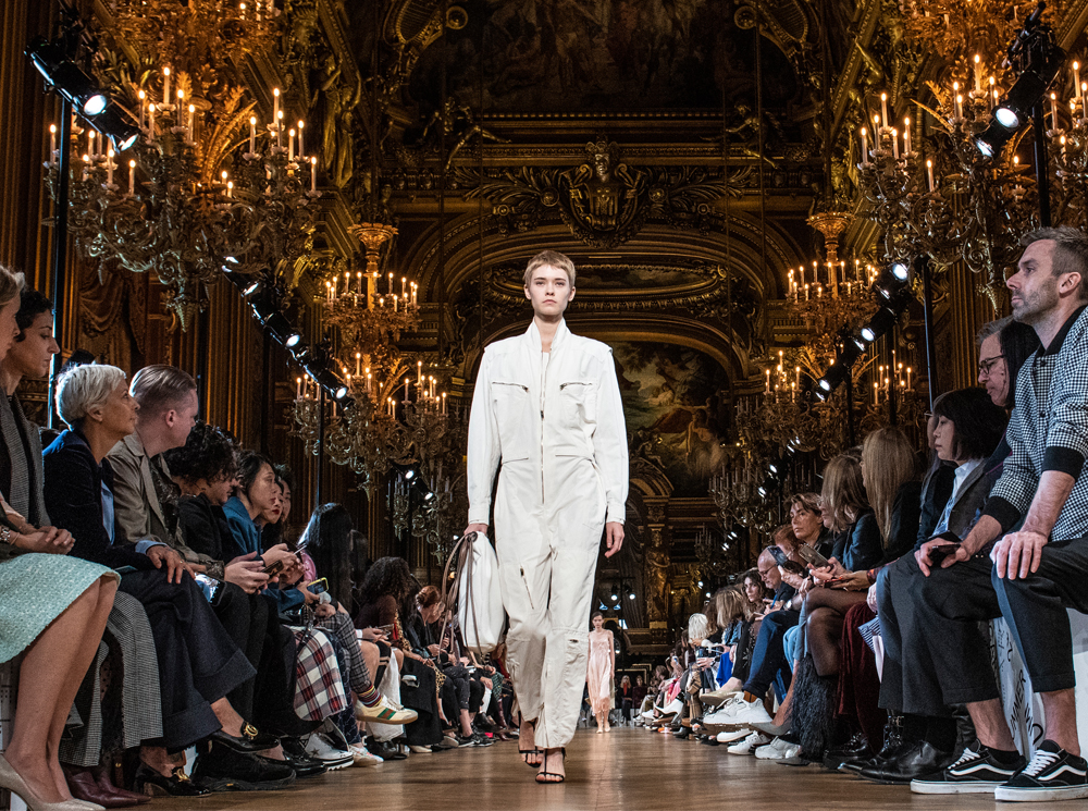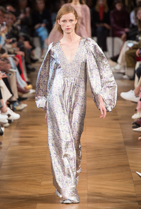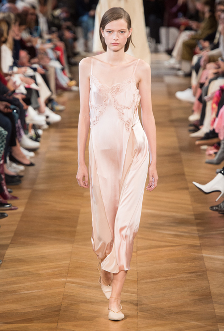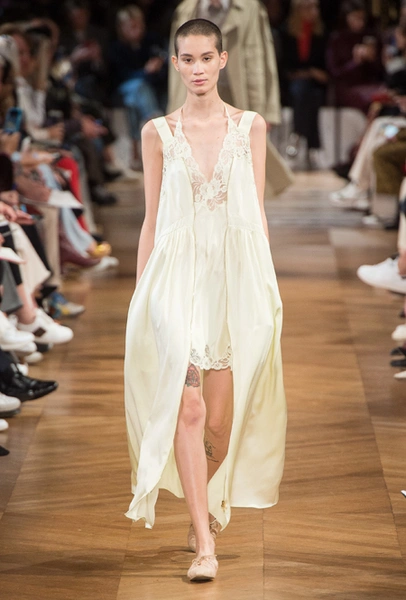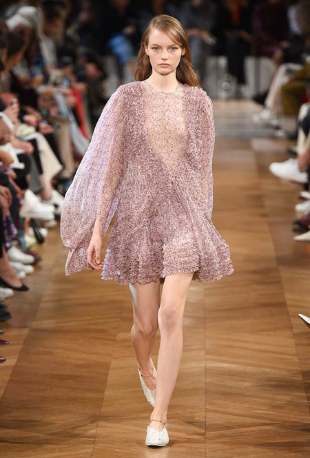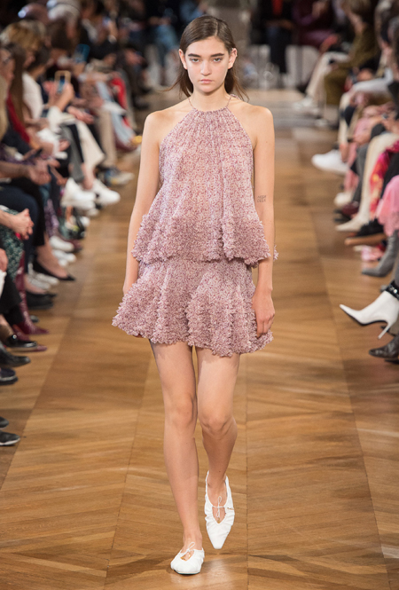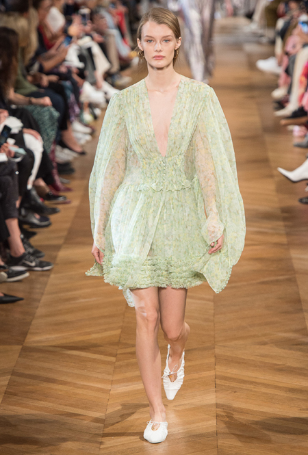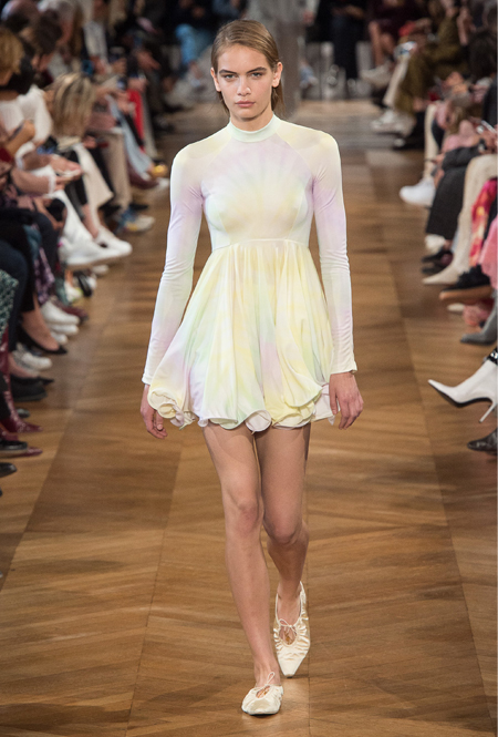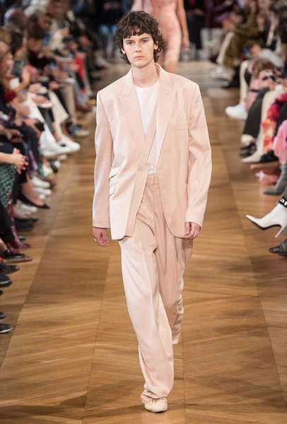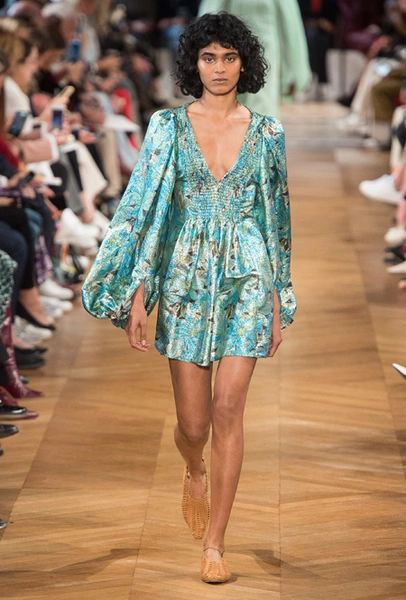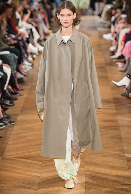 Нежный абрикосовый, бледно-васильковый и мягкий фисташковый — в новом сезоне Стелла Маккартни играет с разбеленными натуральными оттенками, выполняя в размытой цветовой гамме льняные оверсайз-костюмы, легкие кружевные топы из струящегося шелка и свободные трикотажные брюки. Даже принт тай-дай, позаимствованный у хиппи 70-х и переживший в этом году второе рождение, у бренда не такой яркий и полноцветный и напоминает, скорее, легкие акварельные разводы на футболках и топах. Однако такие оттенки совсем не выглядят тускло и уныло — в пастельной палитре ярче проявляют себя фактуры и объемы.