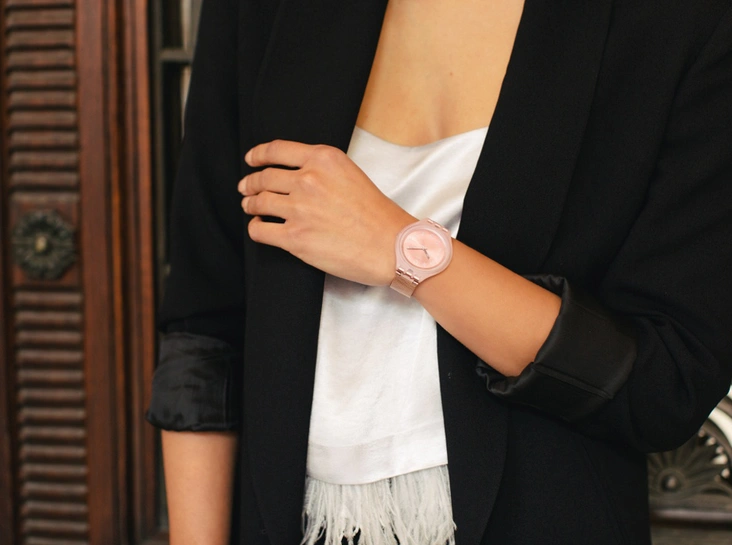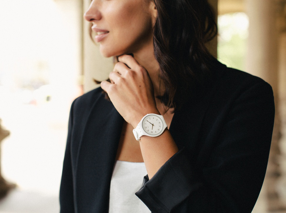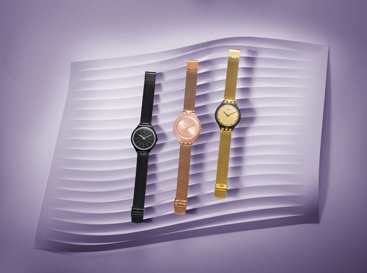 Некоторые модели из новой коллекции вдохновлены экземплярами прошлого года. Так, модель SkinNoir превратилась в абсолютно черную Skinsuit, а SkinPure осветлилась до новой SkinSnow. Есть и реминисценция премьеры 1997 года – часы SkinThrough с ярким принтом в горизонтальную полоску.