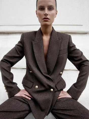 Коллекцию Premium отличают многокомпонентные составы и сложные способы обработки ткани. Так, жакет скульптурирует фигуру благодаря эффекту бондирования, воротник держит форму за счет использования фильца, а ткань эффектно сияет из-за обработки хлопкового материала. Приталенное шерстяное пальто обладает анти-пиллинг эффектом, но при этом хорошо согревает. Кожаные брюки дополнены подкладом до уровня колен: это позволяет модели сохранять форму и обеспечивать безупречную посадку.