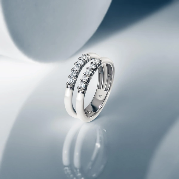 Благодаря инновационным технологиям используется новое поколение эмали с большим содержанием керамики. Ювелирная керамика — прочный и долговечный материал, хотя на первый взгляд он может показаться хрупким. Глянцевая цветная керамика добавляет украшениям необходимый объем и служит отличным фоном для драгоценных камней. Яркие оттенки дают возможность экспериментировать, расставляя выразительные акценты, а черная и белая керамика позволяет играть на контрасте.