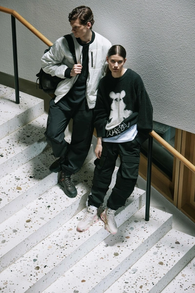 Особое место уделено одежде и обуви, которые помогли выразить индивидуальность танцоров, став непосредственными участниками перформанса. Женскую партию исполнили красные лаковые туфли Principe di Bologna и туфли Casadei, кеды Barracuda, хайкеры Premiata с усиленной шнуровкой, сапоги-трубы в тандеме с кросс-боди Vic Matie, а также ботильоны Anna Rachele с эластичным голенищем и балетки Pollini.