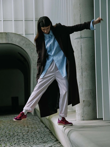 Модели из мужской коллекции также проявили себя. Синие оксфорды Principe di Bologna из кожи премиального качества, высокие ботинки Renzo Mercuri, замшевые лоферы Fabi и кроссовки Baldinini, созданные при участии ACBC, — все они олицетворяют откровенность, решительность и твердый мужской характер, сливающийся с мягкостью движений.