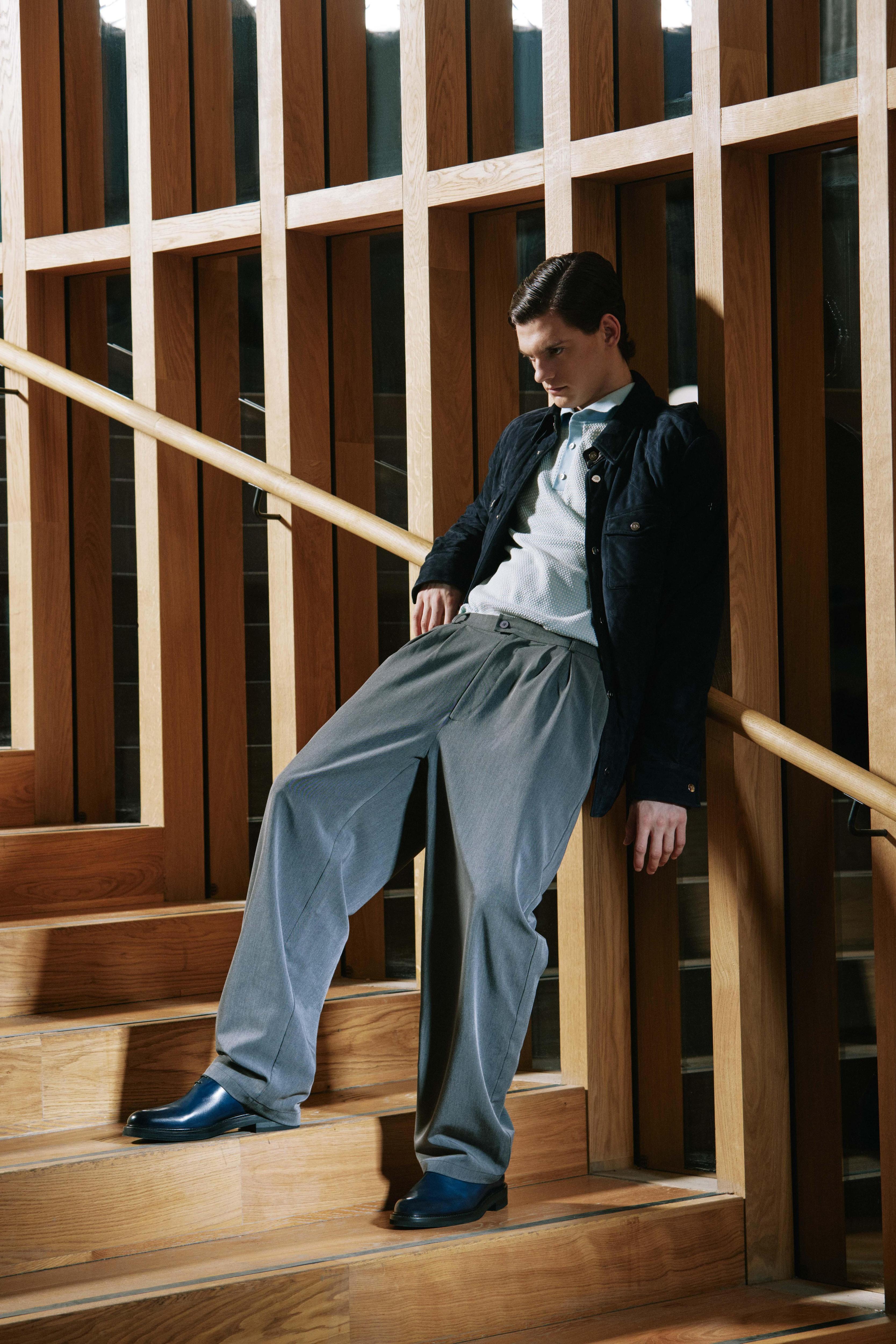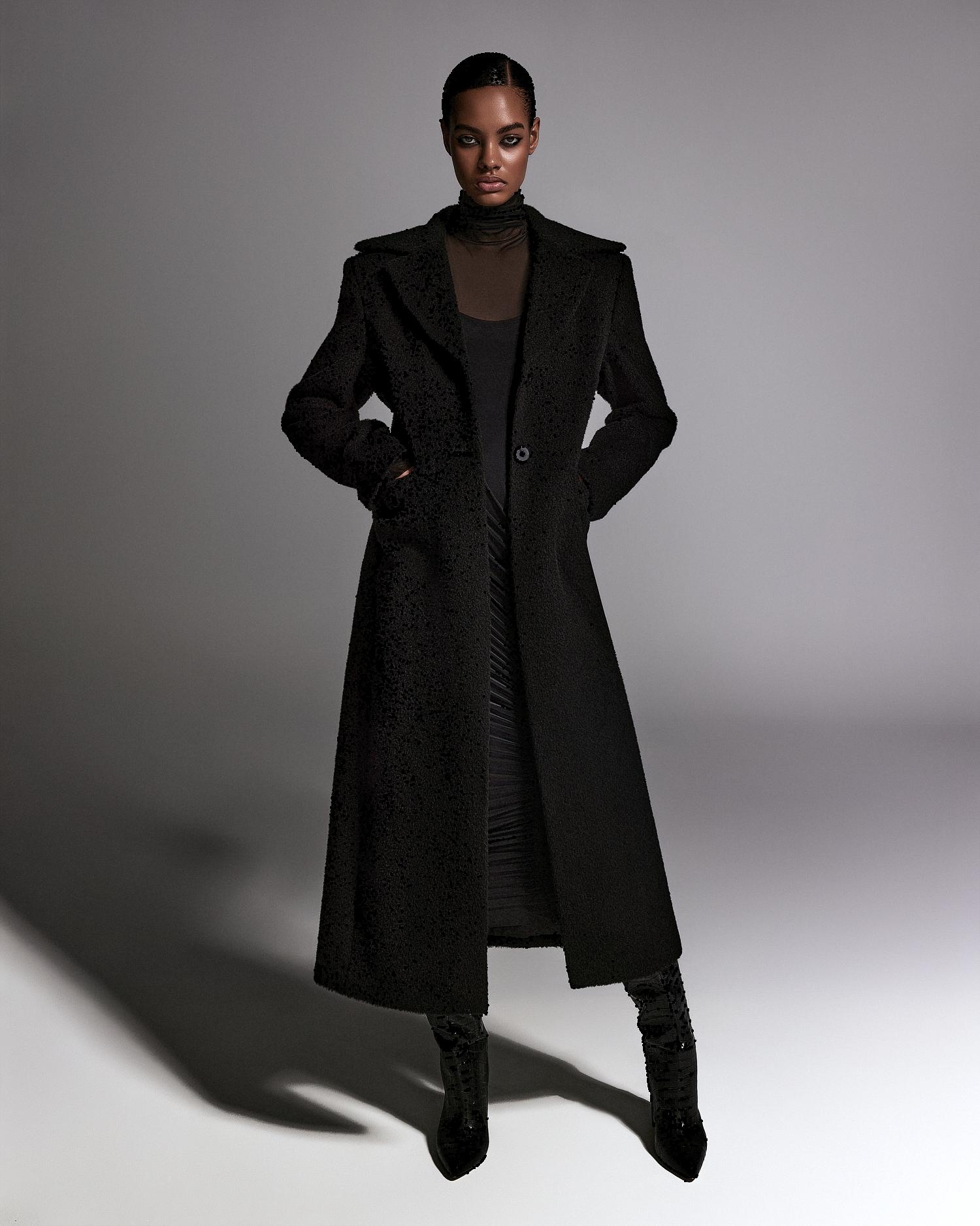 Коллекцию Premium отличают многокомпонентные составы и сложные способы обработки ткани. Так, жакет скульптурирует фигуру благодаря эффекту бондирования, воротник держит форму за счет использования фильца, а ткань эффектно сияет из-за обработки хлопкового материала. Приталенное шерстяное пальто обладает анти-пиллинг эффектом, но при этом хорошо согревает. Кожаные брюки дополнены подкладом до уровня колен: это позволяет модели сохранять форму и обеспечивать безупречную посадку.