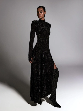 Ключевые модели коллекции: шуба из натуральной шерсти, шелковая блуза с бантом, платье из мраморного бархата, брюки из 100% кожи. Впервые в линии представлена обувь: бархатные ботфорты и кожаные сапоги с тиснением под питона.
