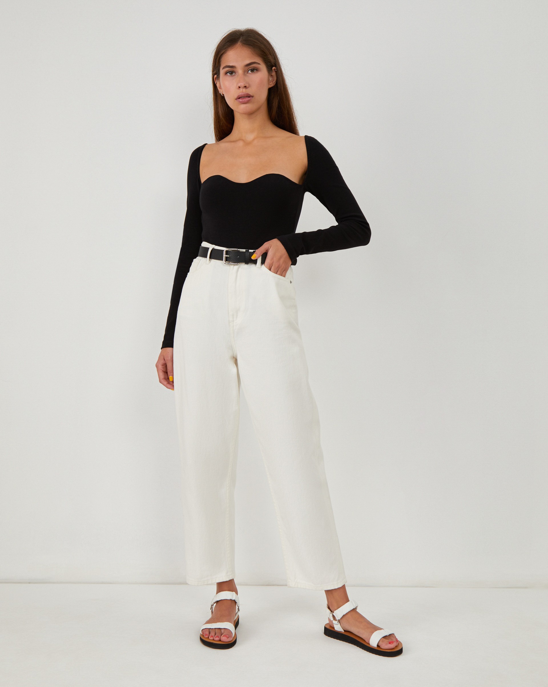 Длина рукава также имеет значение. Если летом можно с легкостью носить боди без рукавов, с наступлением холодов все же лучше сделать выбор в пользу классических моделей с длинным рукавом или добавить второй слой в виде пиджака, рубашки или легкой куртки. Также обратите внимание на длину модели — комфортно ли вам в ней долгое время и не давит ли?