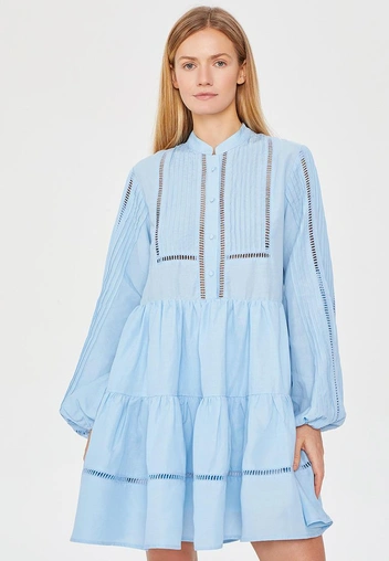 Для обладательниц светлых волос этот цвет станет настоящим украшением, подчеркивающим утонченную внешность. Красавицам-блондинкам подойдут все оттенки голубой палитры: от небесного до бирюзового и цвета морской волны. Являясь природным и естественным по происхождению, он сделает образ женственным и непринужденным и особенно выигрышно будет смотреться на обладательницах голубых и светло-серых глаз. Яркие тона стоит обходить стороной: нарочитые неоновые предметы гардероба лишь удешевят ваш выход и сделают его неактуальным (читайте также: Принцесса масс-маркета: как герцогиня Кейт носит одежду бюджетных брендов).
