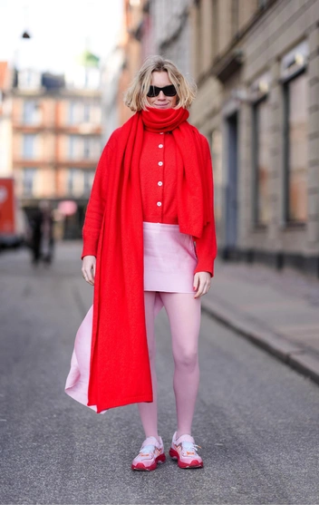 Вопреки мнению о том, что красный выглядит вульгарно, смело отвечаем: разные варианты «рокового» цвета станут отличным акцентом вашего гардероба. Коралловый, малиновый, винный — эти и другие оттенки красной палитры не только подчеркнут нежную внешность блондинок, но и добавят смелости аутфиту. Классический же алый будет прекрасно смотреться в сочетании с принтом «белый горох» — он добавит образу романтики 60-х, которая так полюбилась модницами в России и за рубежом. Советуем выбирать приталенные фасоны красных платьев и юбок, которые подчеркнут вашу фигуру, а если хочется добавить еще больше акцентов, сочетайте их с роскошной алой помадой.