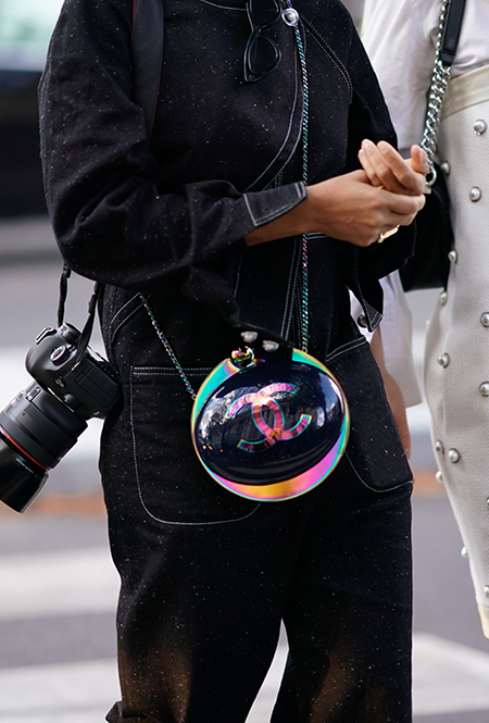Сумки в форме объемных или приплюснутых с двух сторон сфер добавляют наряду мягкости и плавности, прекрасно гармонируя как с женственными нарядами, с которыми они звучат в унисон, так и с брутальными, играя с ними на контрасте. Особого упоминания достойны сезонные сумки от Chanel: своей формой они похожи на далекие планеты, рассматривать которые можно часами.