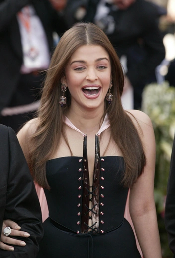 В том же году Айшвария продемонстрировала свой самый запоминающийся образ — пышное платье в цветочный принт с открытыми плечами, которое запомнилось благодаря… фиолетовой губной помаде на губах Рай.