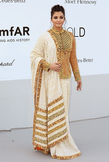 65-й сезон знаменитого киносмотра Айшвария начала с посещения показа amfAR — благотворительного гала-ужина, все вырученные средства с которого были направлены на борьбу со СПИДом. Болливудская звезда (впервые за много лет, как вы могли заметить) отдала предпочтение наряду в индийских мотивах.