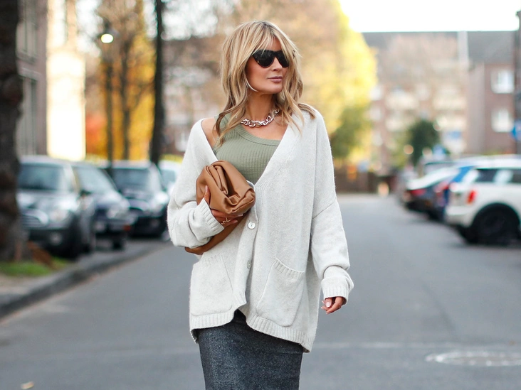 Какой же кардиган выбрать, чтобы он не прибавлял возраст? Ответ очень прост: это кофта на пуговицах лаконичного свободного силуэта в нейтральных цветах. Например, черный, белый или серый кардиганы подходят женщинам любого возраста и любой сферы деятельности. Откажитесь от цветочных принтов и кроя с запахом — это давно устаревшие модели. Если в вашем гардеробе нашелся правильный элемент одежды, тогда мы смело переходим к его стилизации.