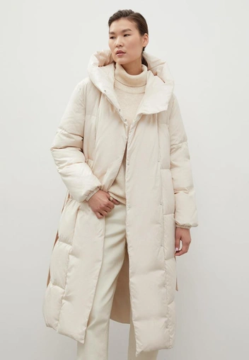 Удлиненный пуховик с поясом