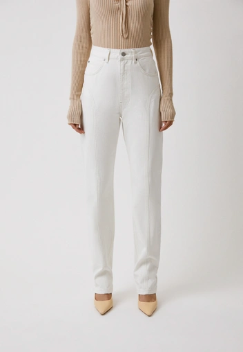 Поэтому они возвращаются к классике — джинсам и брюкам на высокой посадке, которая не только смотрится в аутфитах эффектно, но еще и визуально работает с фигурой: удлиняет ноги и стройнит бедра.