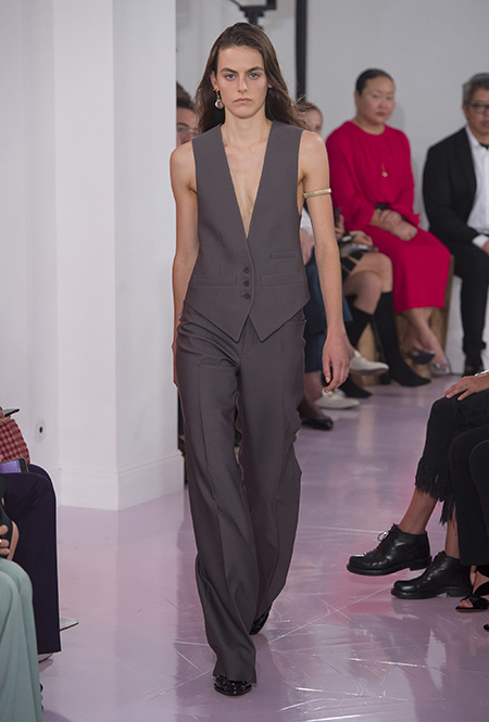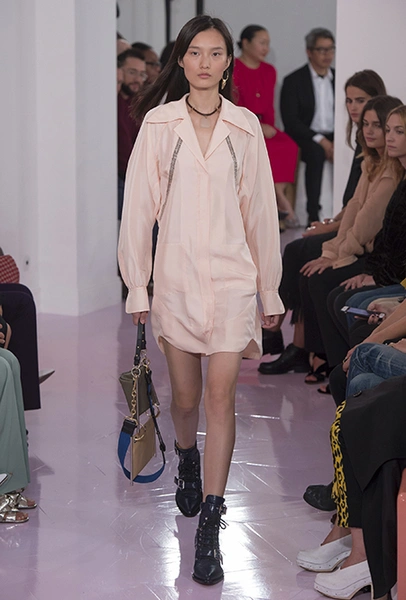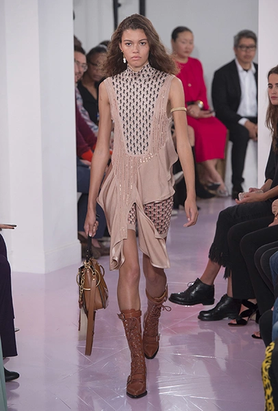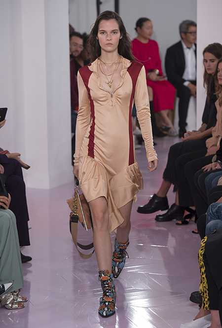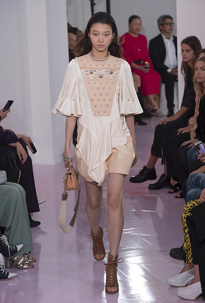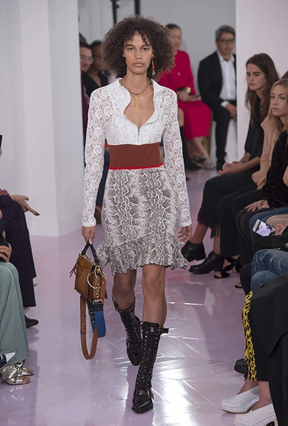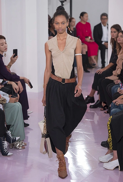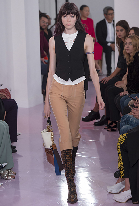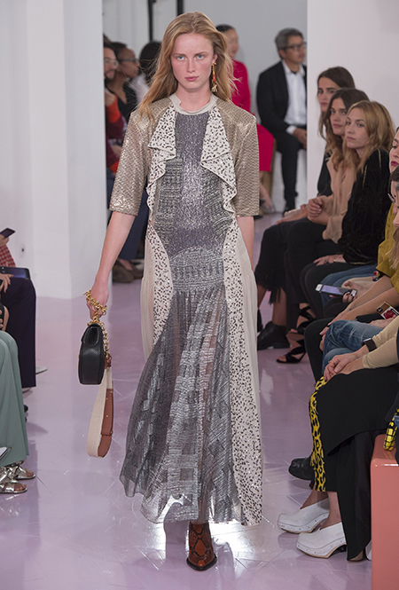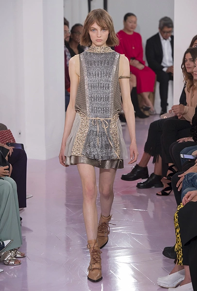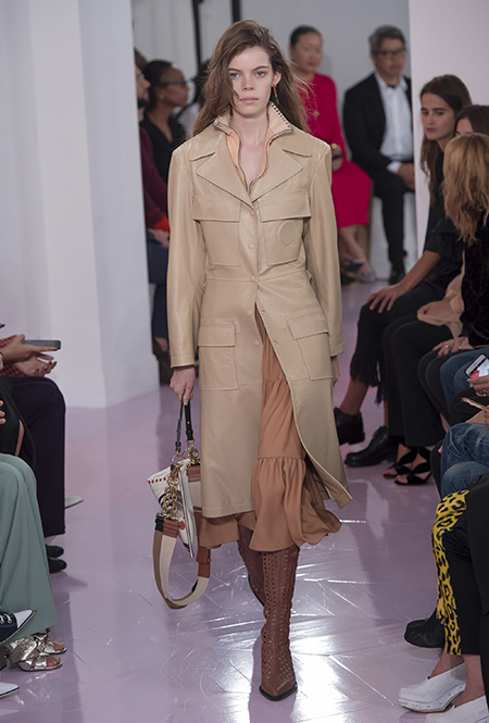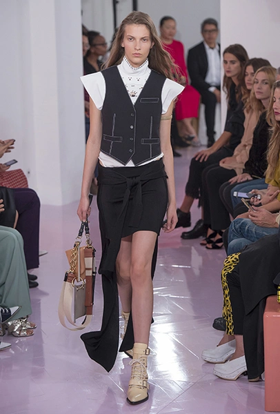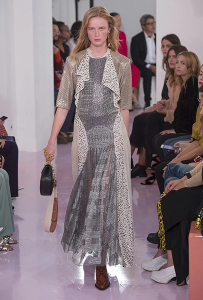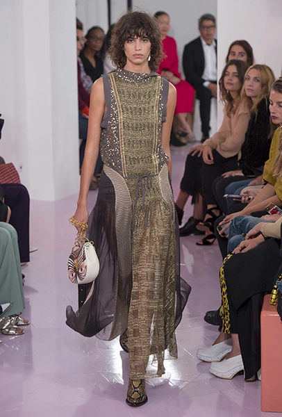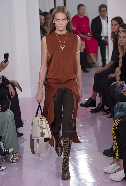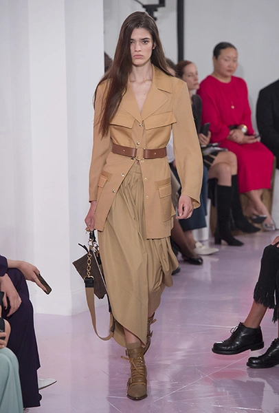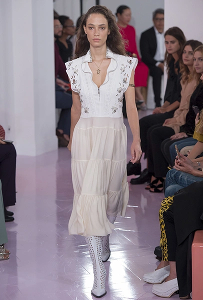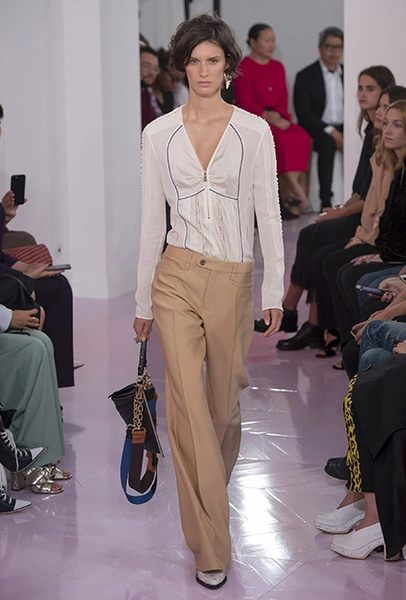 Новый креативный директор бренда Наташа Рамсей-Леви несколько лет работала под началом Николя Жескьера – сперва в Balenciaga, затем в Louis Vuitton. Сегодня она называет бывшего шефа своим любимым дизайнером, и в ее дебютной коллекции для Chloe чувствуется его влияние. По признанию самой Наташи, прежде всего она переняла у Жескьера его любовь к ассиметричному крою. Ассиметричные здесь рукава, часто линии подола, а иногда даже борты пальто. При этом Рамсей-Леви попыталась следовать кодам знаменитого французского бренда, создать серию вещей женственных, с налетом богемности, но практичных и носибельных. И, кажется, задуманное ей вполне удалось.
