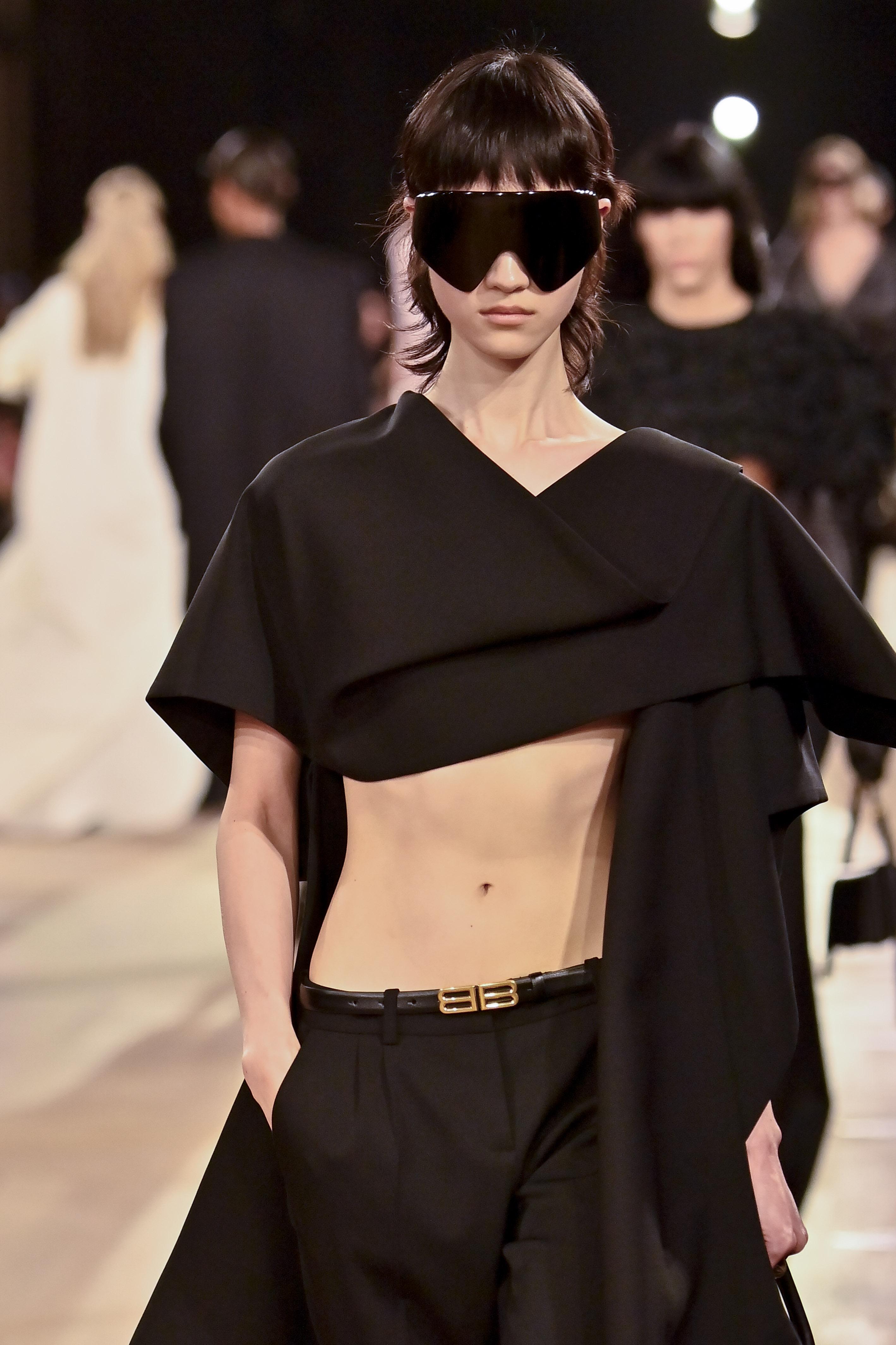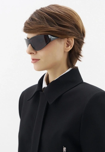 Маски и щиты — практически монолитные линзы, многим напоминающие горнолыжную маску, но в городе они работают как экстра-модная деталь, особенно в элегантном прочтении Balenciaga и Loewe.