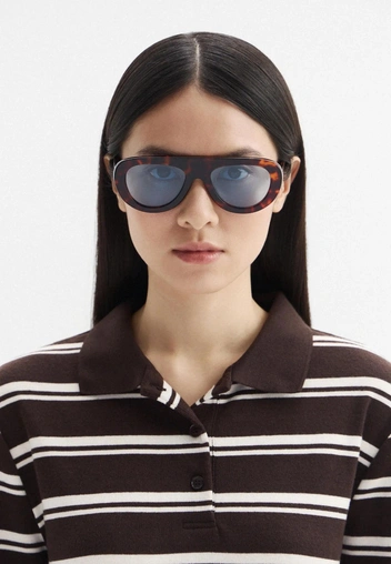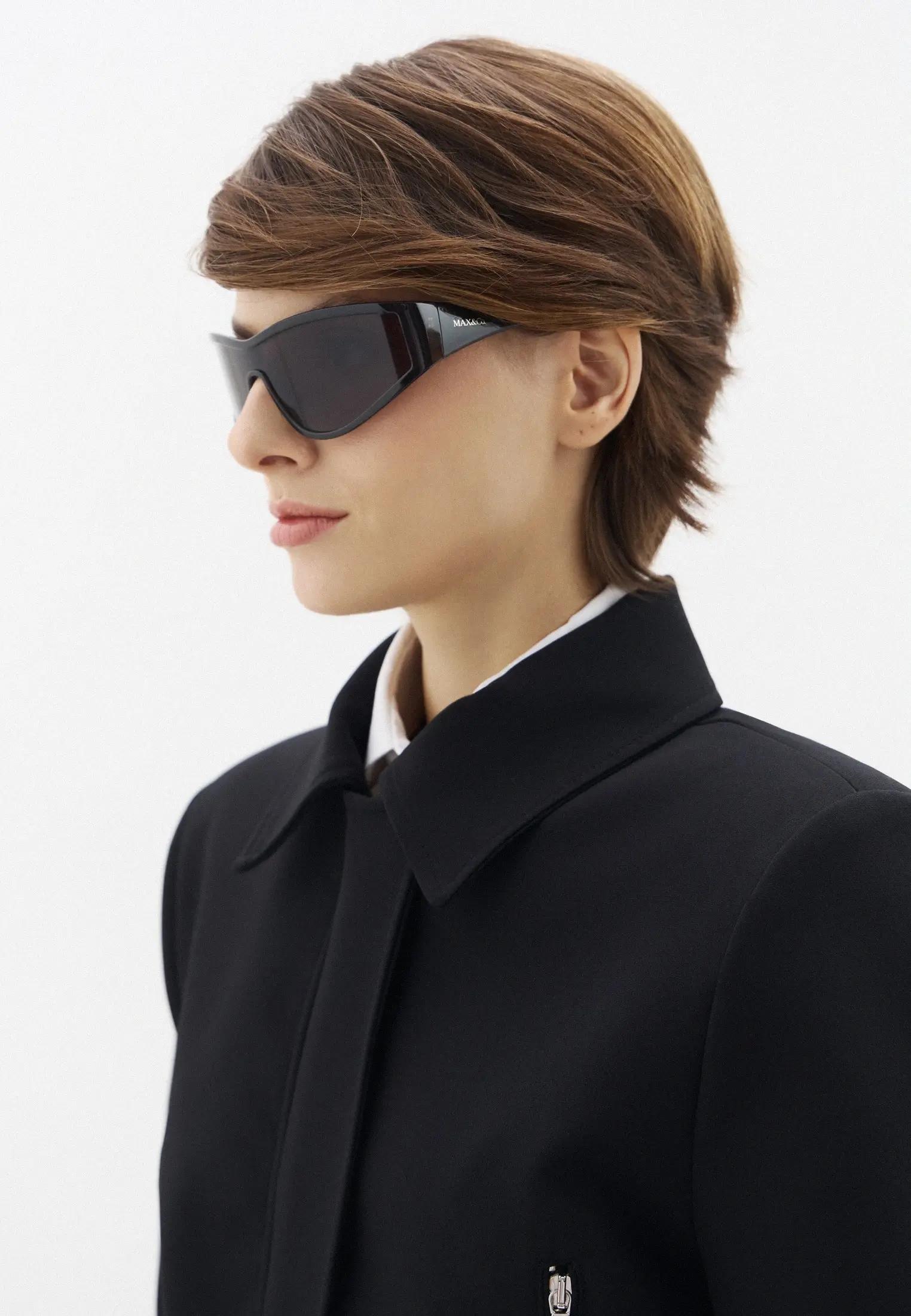 Если хочется шагнуть дальше, подойдут маскообразные модели: в жизни они лучше всего сочетаются с самыми базовыми вещами — прямыми джинсами, мужским пиджаком, белыми кедами. Чем «громче» очки, тем «тише» должен быть аутфит вокруг — это фешн-правило работает безотказно в любой ситуации.