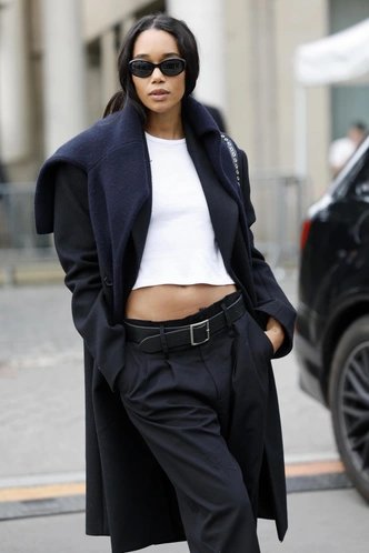 Большие очки работают как визуальный маркер: они намеренно искажают пропорции лица, превращают привычные феминные черты в легкий драматический спектакль одним движением руки. Плюс неизменный бонус — приватность: половина лица скрыта, и вы автоматически становитесь слегка загадочной, даже если в реальности всего лишь прячете понедельничный недосып (читайте также: Почему моду так резко качнуло от тихой роскоши к глэм-шику).