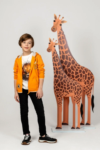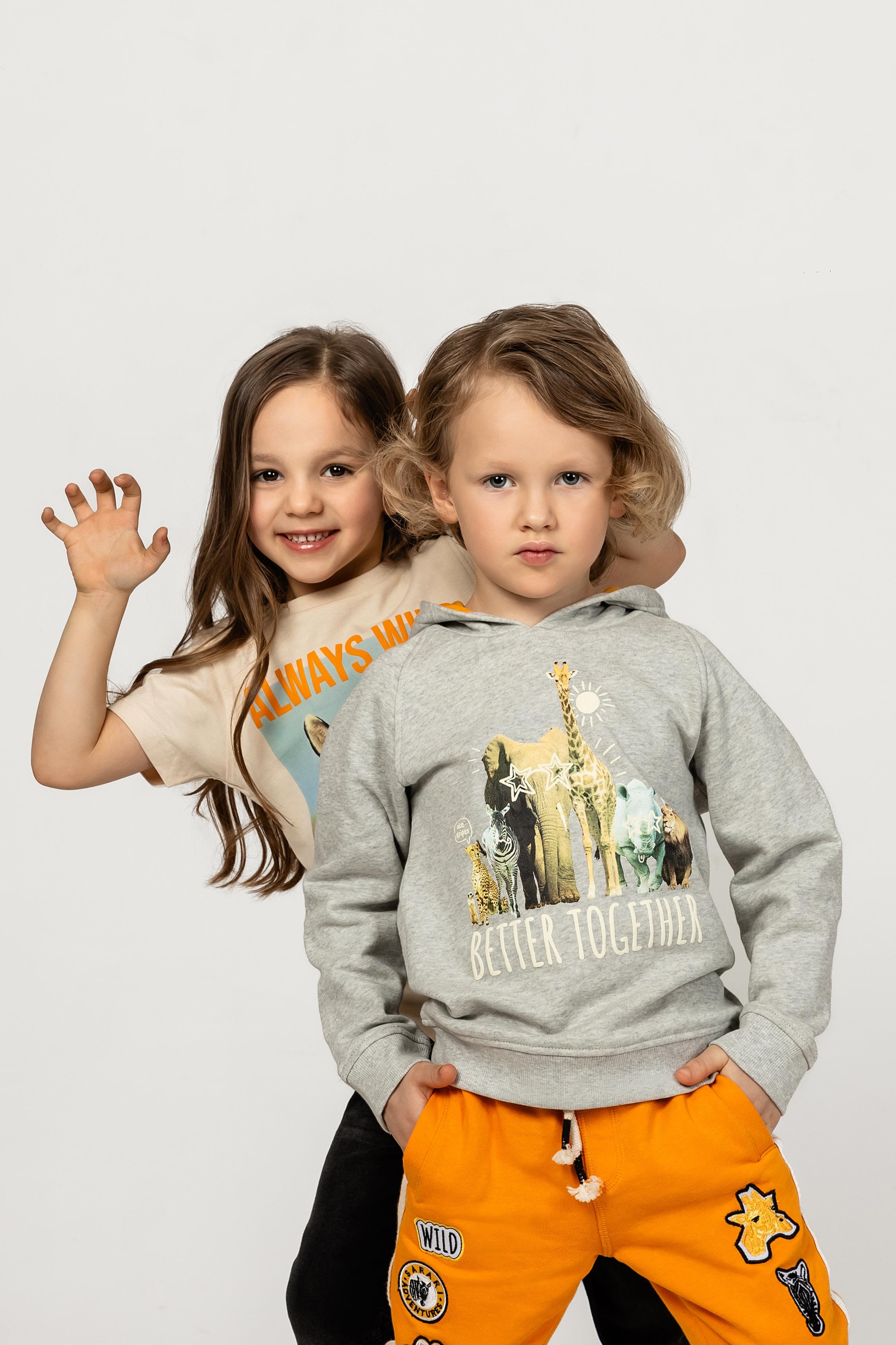 Детский бренд Motherbear представил новую коллекцию одежды для весеннего сезона. Дизайнеры вдохновились экзотикой Африки. Основным цветом стал ярко-оранжевый, символизирующий собой горячее солнце и раскаленный песок пустыни. В принтах акцент сделан на ключевых представителях фауны жаркого континента — футболки и худи украшены изображениями зебры, слона, жирафа и льва.