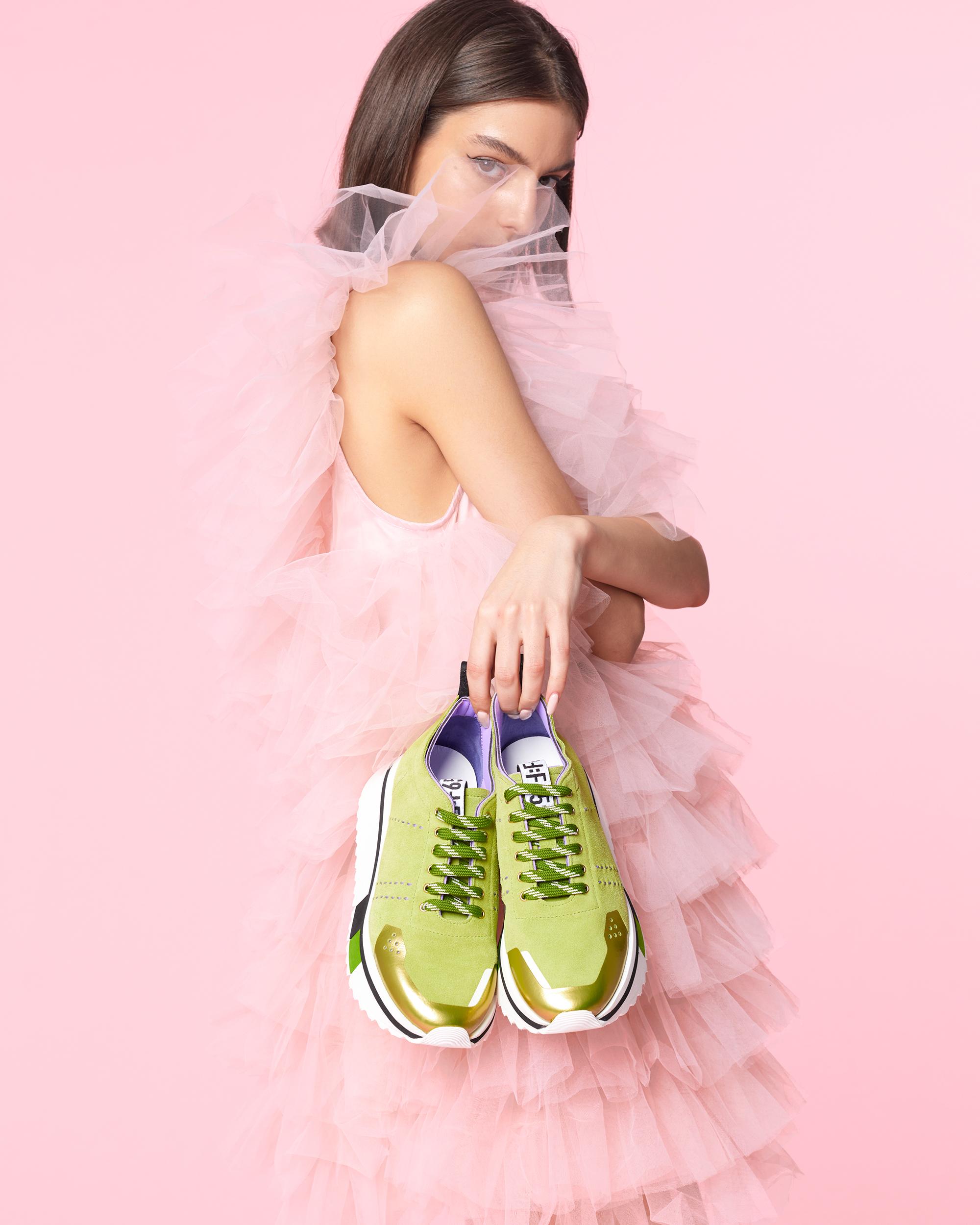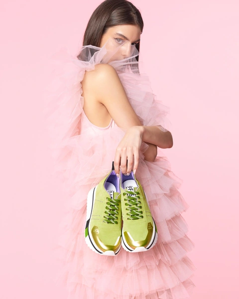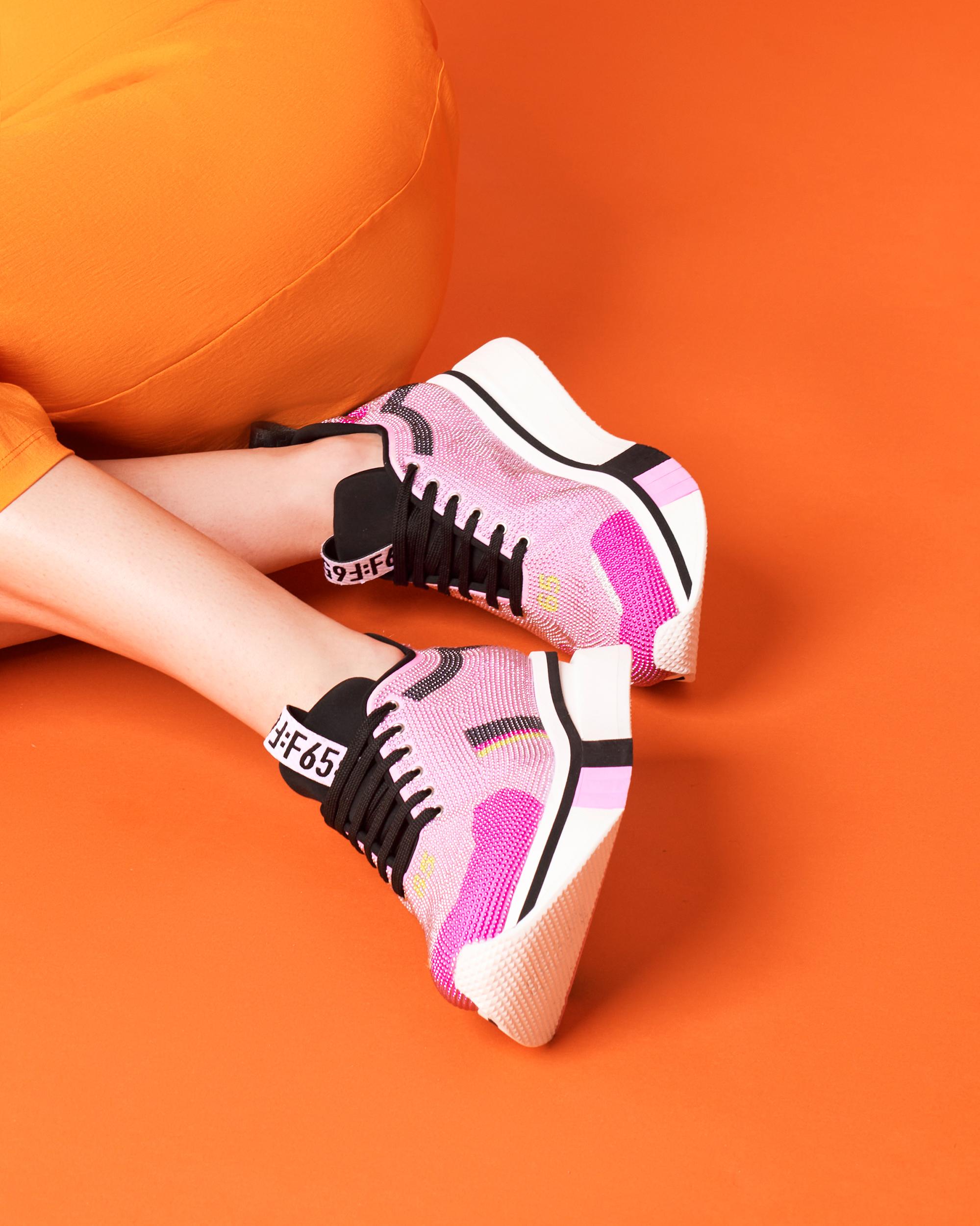 Кроссовки F65 из коллекции Fabi — воплощение творческого, экспериментального отношения к моде. К весне бренд обновил эту знаковую линейку, наделив унисекс-модели подошвой с многочисленными насечками, которых раньше не было, и добавив новые варианты цветовых комбинаций и материалов — от твида и принтов со стразами до высокотехнологичного дышащего текстиля.