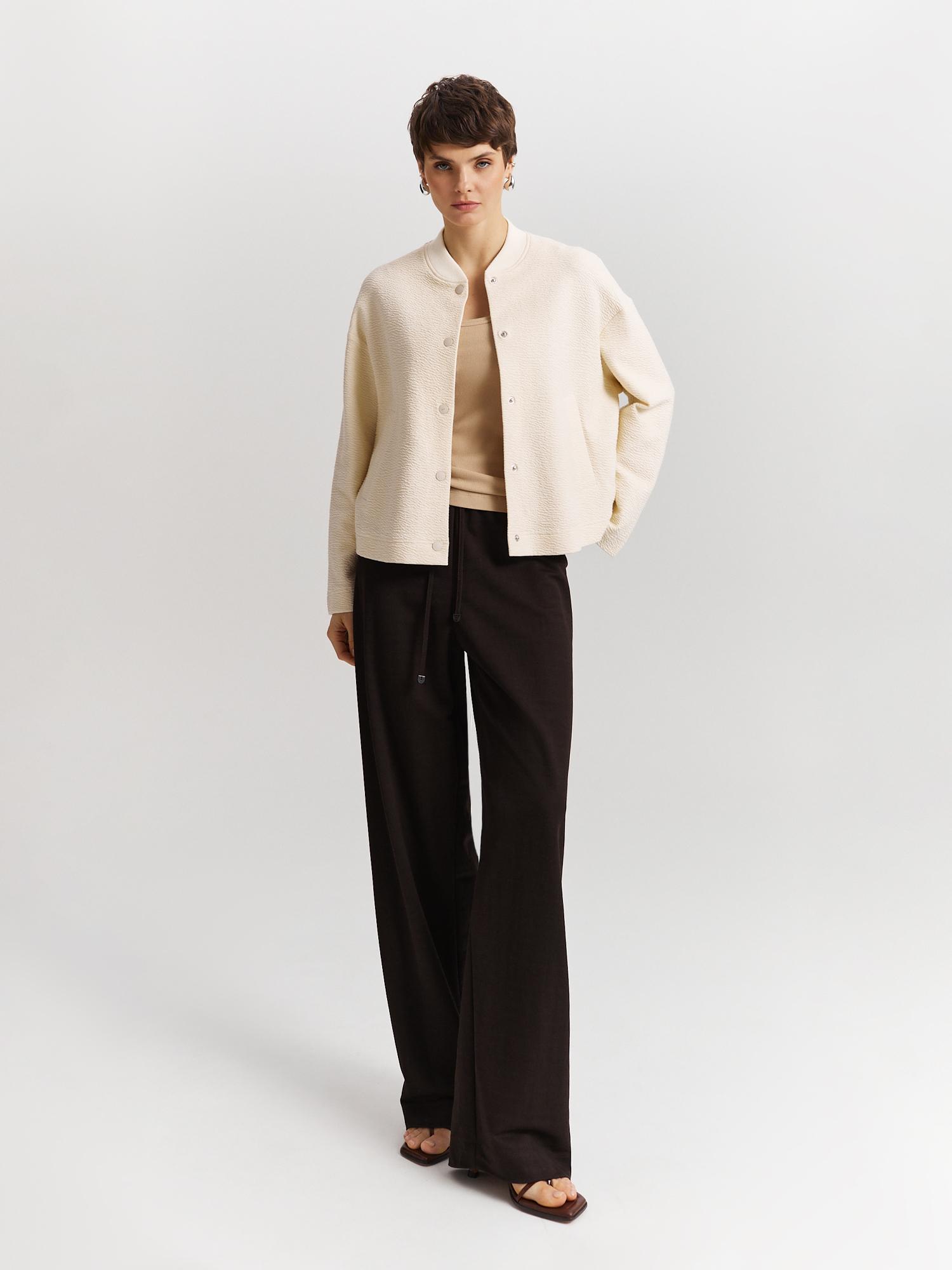 Российский бренд ELIS представляет первую капсулу коллекции «Летние истории» с одеждой в минималистичном стиле из натуральных тканей. В летний дроп вошли элегантные женственные позиции: льняной пудровый костюм-двойка, состоящий из классического жакета и прямых брюк, рубашка из 100% хлопка свободного силуэта прямого кроя с тематическим принтом капсулы, а также фирменный вязаный трикотаж — базовые топы в рубчик и футболки гладкой вязки. Оригинальный принт находит отражение в комфортном платье-рубашке и юбке А-силуэта из струящейся ткани. Для прохладных летних вечеров подойдет бежевый бомбер лаконичного дизайна в сочетании с базовыми черными брюками.