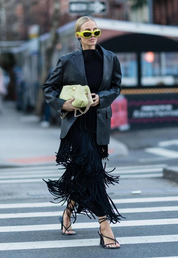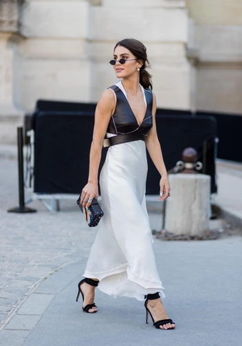Однако главным модным приемом является сочетание с просторной юбкой или платьем макси из легкой ткани, например, шелка, сатина, льна, с боковым разрезом от бедра. Таким образом вы сможете продемонстрировать не только стройные ноги, но и модные босоножки, на которые будут обращать внимание и подруги, и коллеги. Подбирайте обувь акцентных цветов, не зацикливаясь на черном и пастельных оттенках.