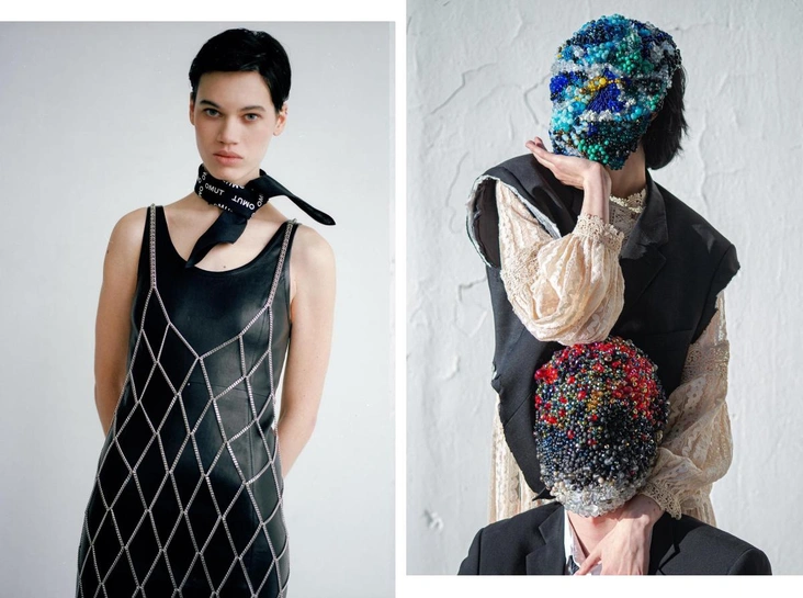 За совсем новым брендом артизанальных аксессуаров стоит выпускница Британской школы дизайна Анна Дегтярева. Все сделано вручную, над украшениями Création Pôle работает больше 50 мастеров разного возраста. Важное правило: мастерам намеренно не дают конкретных узоров или схем вышивок — конечный результат заранее неизвестен, оттого каждый предмет становится практически арт-объектом. У бренда есть вышитые бисером ободки, наперстки, анатомичные сердца-броши и маски, закрывающие лицо целиком.